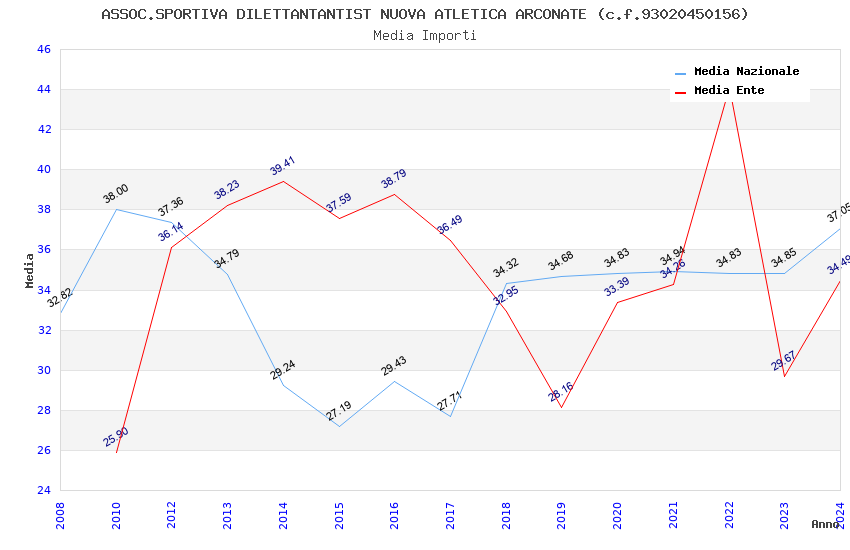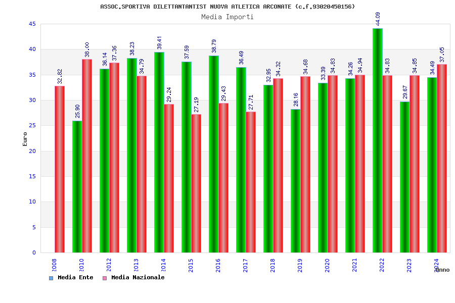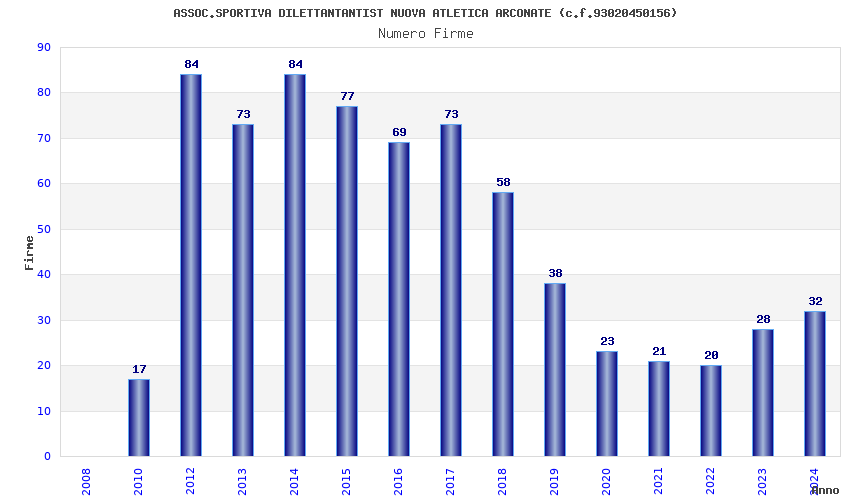 | Anno | Firme | Importi | Media | Naz. | Reg. | Prov. | Comu. |