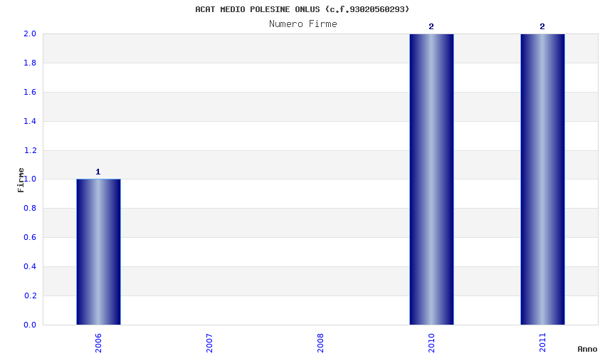 | Anno | Firme | Importi | Media | Naz. | Reg. | Prov. | Comu. |