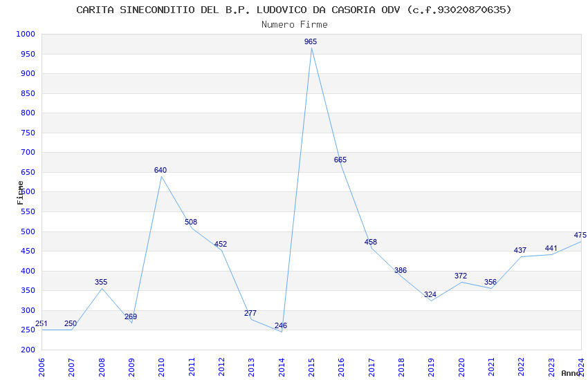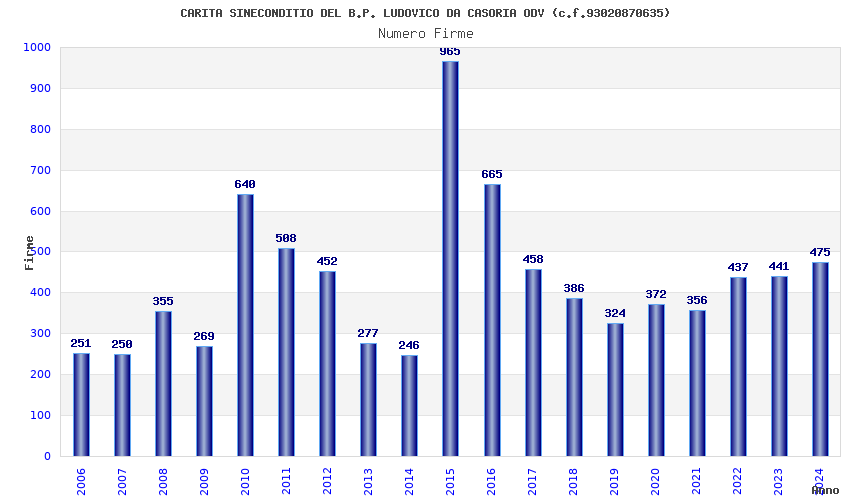 | Anno | Firme | Importi | Media | Naz. | Reg. | Prov. | Comu. |