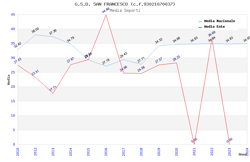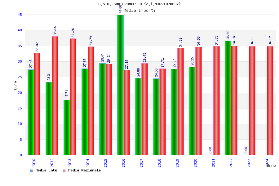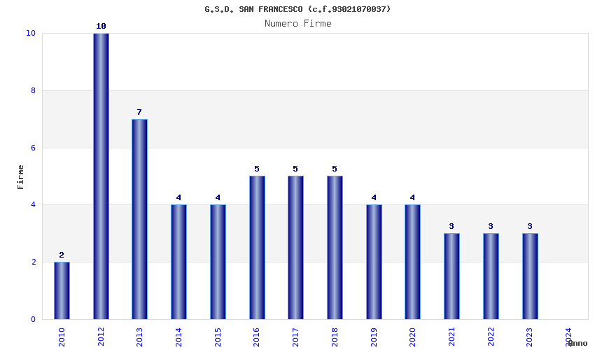 | Anno | Firme | Importi | Media | Naz. | Reg. | Prov. | Comu. |
