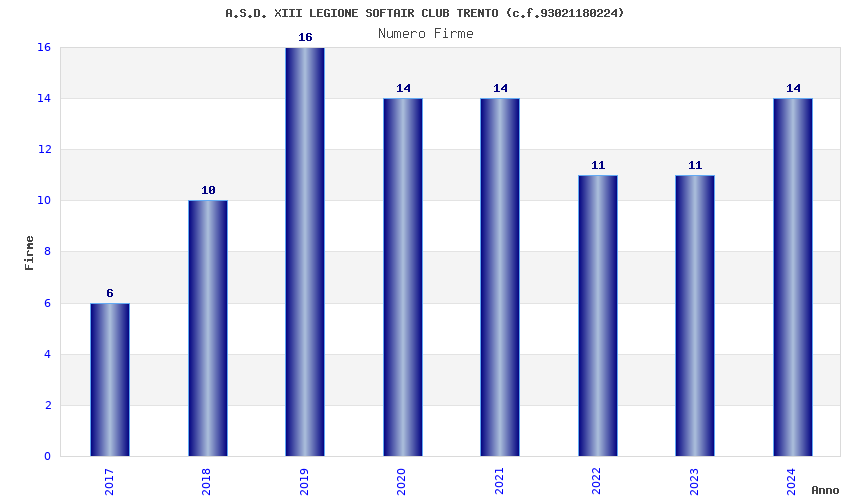| Anno | Firme | Importi | Media | Naz. | Reg. | Prov. | Comu. |