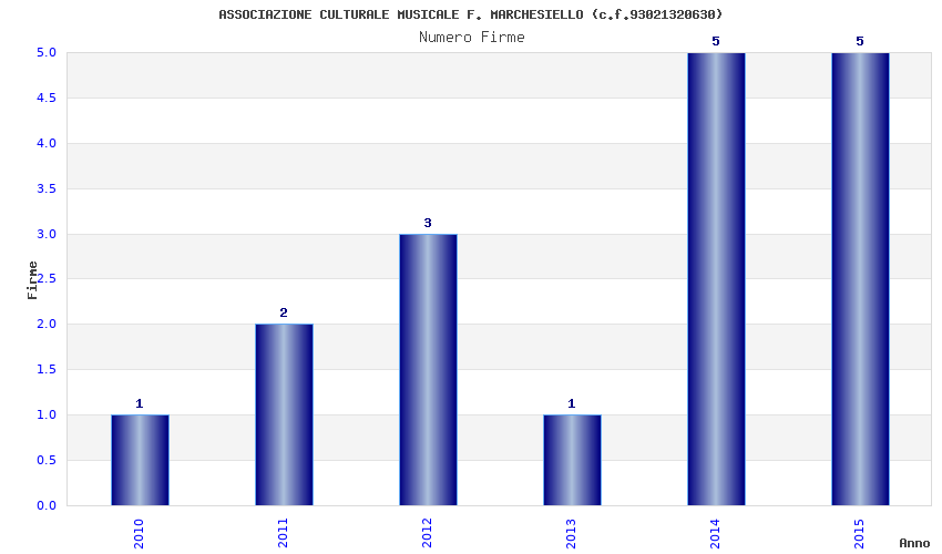 | Anno | Firme | Importi | Media | Naz. | Reg. | Prov. | Comu. |