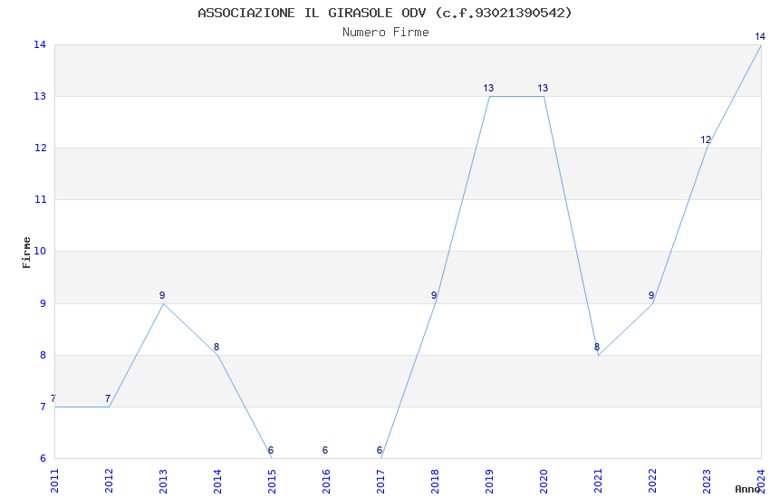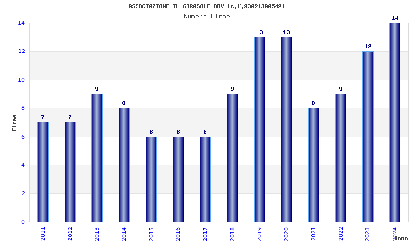 | Anno | Firme | Importi | Media | Naz. | Reg. | Prov. | Comu. |