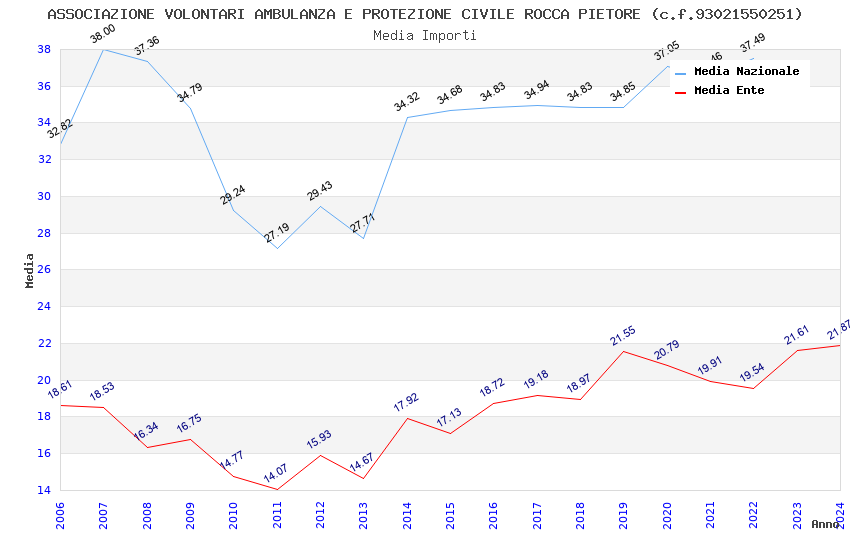 | Anno | Firme | Importi | Media | Naz. | Reg. | Prov. | Comu. |