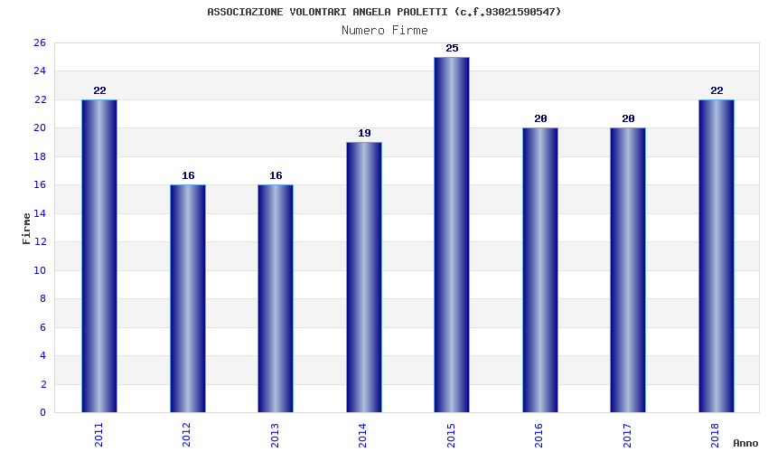 | Anno | Firme | Importi | Media | Naz. | Reg. | Prov. | Comu. |
