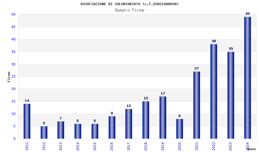 | Anno | Firme | Importi | Media | Naz. | Reg. | Prov. | Comu. |