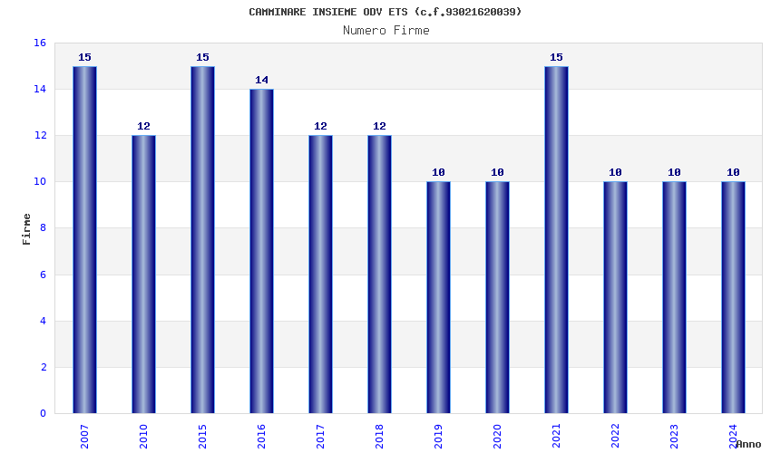 | Anno | Firme | Importi | Media | Naz. | Reg. | Prov. | Comu. |