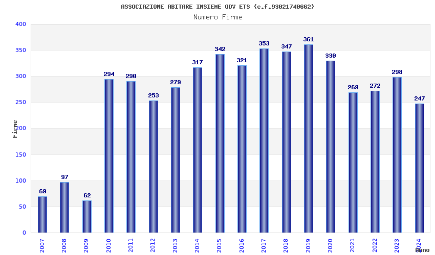 | Anno | Firme | Importi | Media | Naz. | Reg. | Prov. | Comu. |