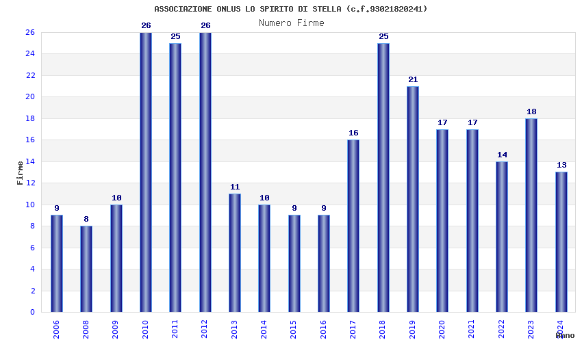 | Anno | Firme | Importi | Media | Naz. | Reg. | Prov. | Comu. |