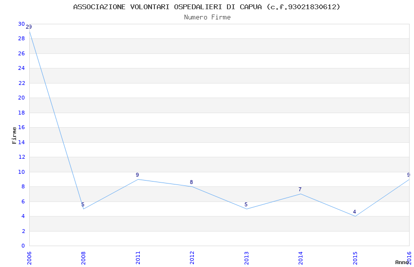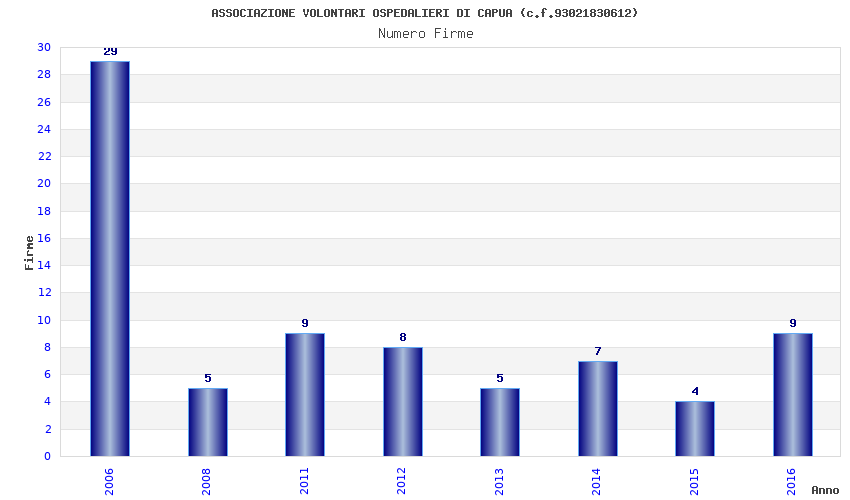 | Anno | Firme | Importi | Media | Naz. | Reg. | Prov. | Comu. |