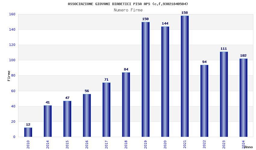 | Anno | Firme | Importi | Media | Naz. | Reg. | Prov. | Comu. |