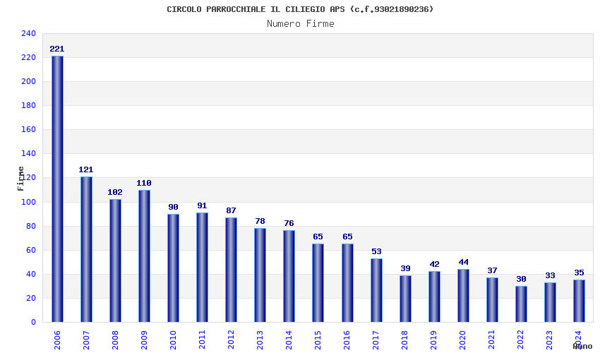 | Anno | Firme | Importi | Media | Naz. | Reg. | Prov. | Comu. |