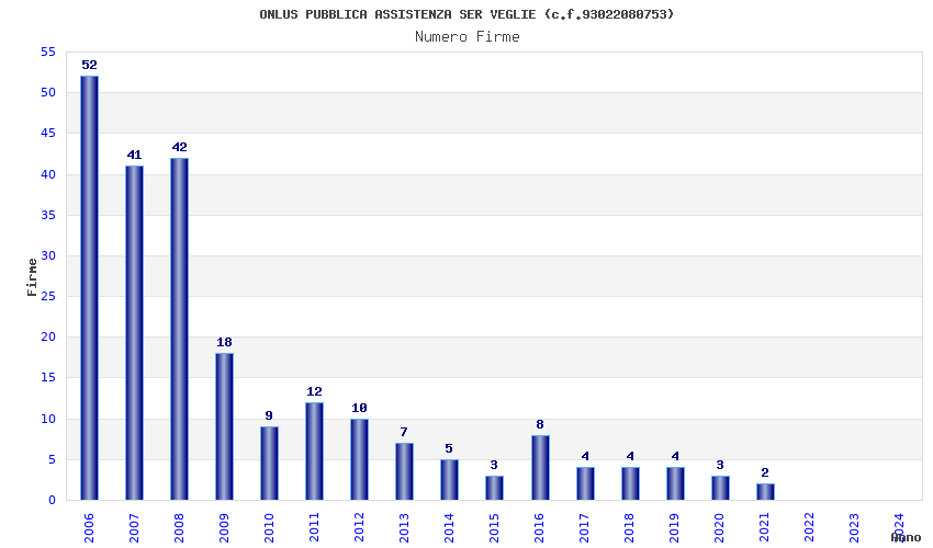 | Anno | Firme | Importi | Media | Naz. | Reg. | Prov. | Comu. |