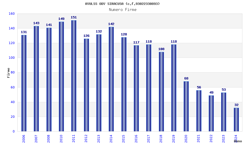 | Anno | Firme | Importi | Media | Naz. | Reg. | Prov. | Comu. |
