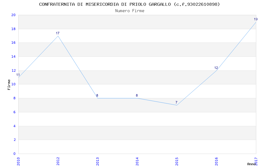 | 2017 | 19 | 278,98 | 14,68 | 49.892 | 2.833 | 212 | 7 |