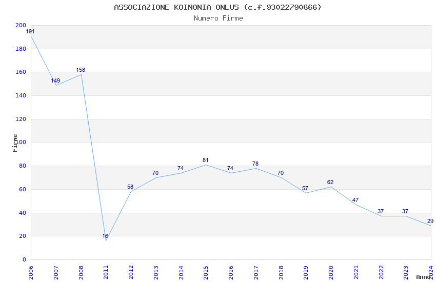| 2006 | 191 | 3.767,90 | 19,73 | 10.233 | 142 | 29 | 10 |