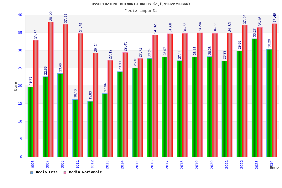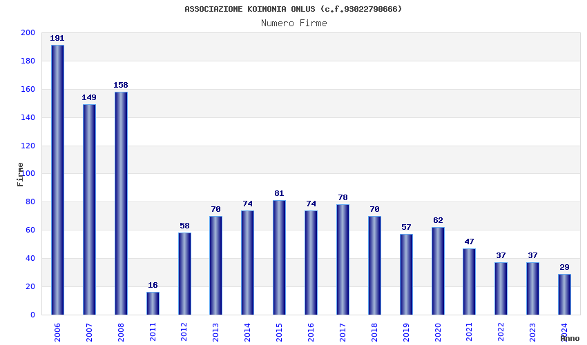 | Anno | Firme | Importi | Media | Naz. | Reg. | Prov. | Comu. |