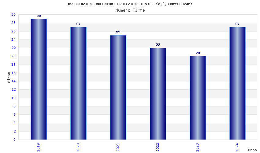 | Anno | Firme | Importi | Media | Naz. | Reg. | Prov. | Comu. |