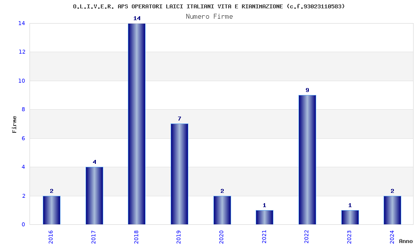 | Anno | Firme | Importi | Media | Naz. | Reg. | Prov. | Comu. |