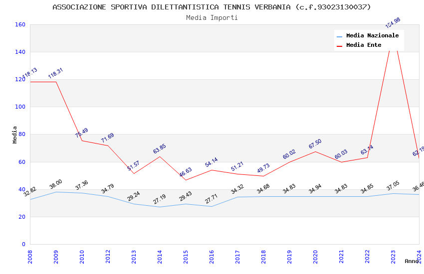 | Anno | Firme | Importi | Media | Naz. | Reg. | Prov. | Comu. |