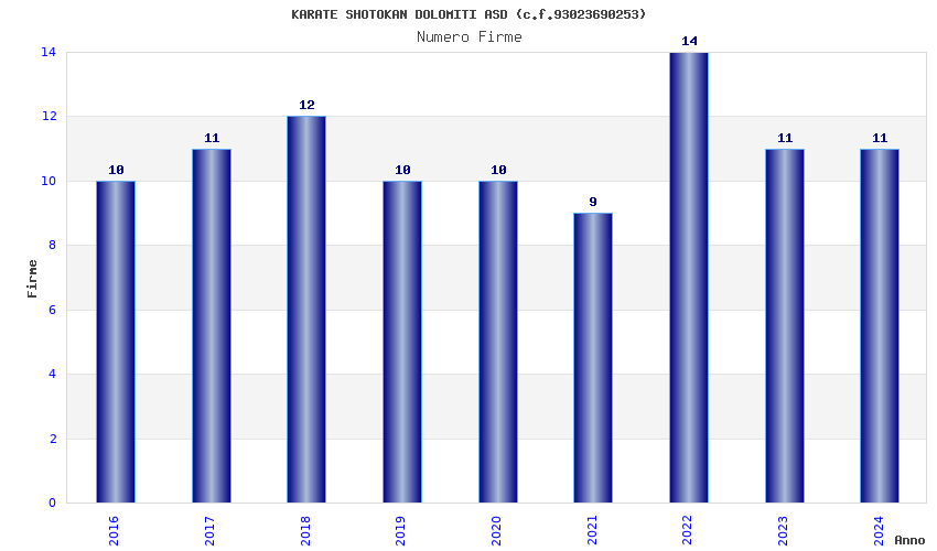 | 2022 | 14 | 305,67 | 21,83 | 52.002 | 4.919 | 327 | 12 |