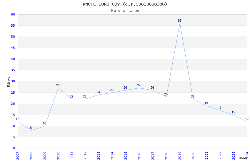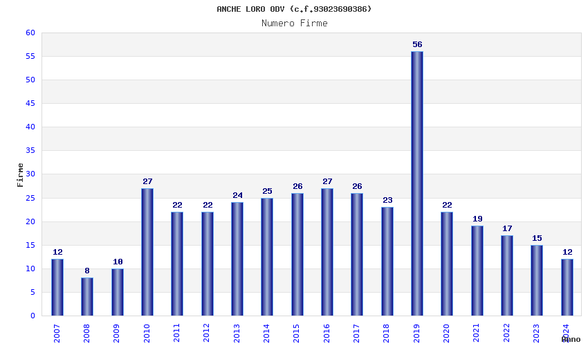 | Anno | Firme | Importi | Media | Naz. | Reg. | Prov. | Comu. |