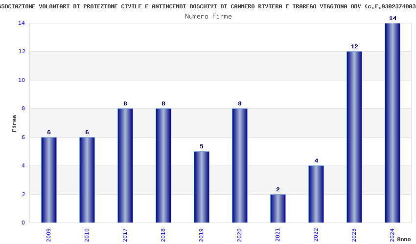 | Anno | Firme | Importi | Media | Naz. | Reg. | Prov. | Comu. |