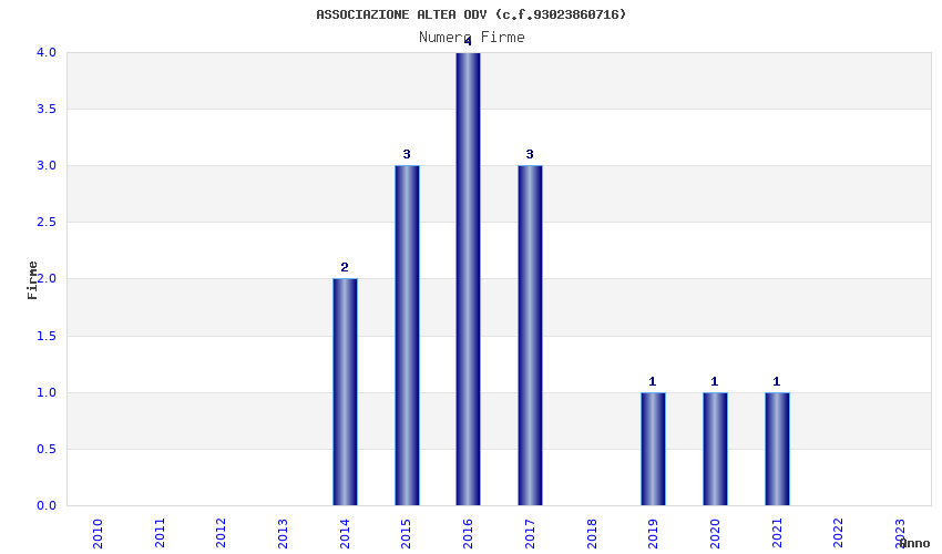 | Anno | Firme | Importi | Media | Naz. | Reg. | Prov. | Comu. |
