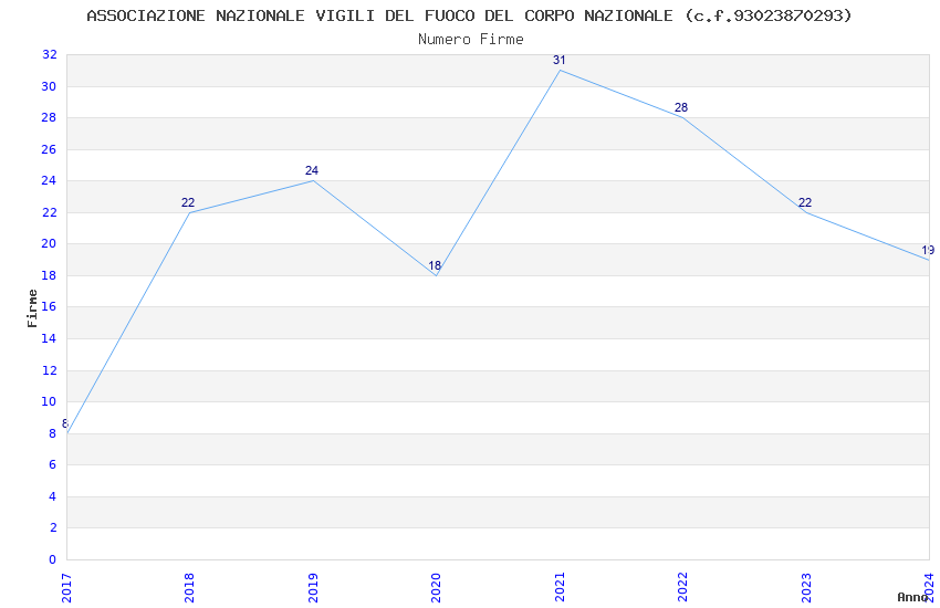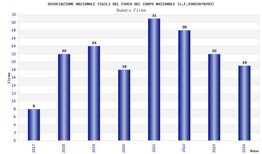 | Anno | Firme | Importi | Media | Naz. | Reg. | Prov. | Comu. |