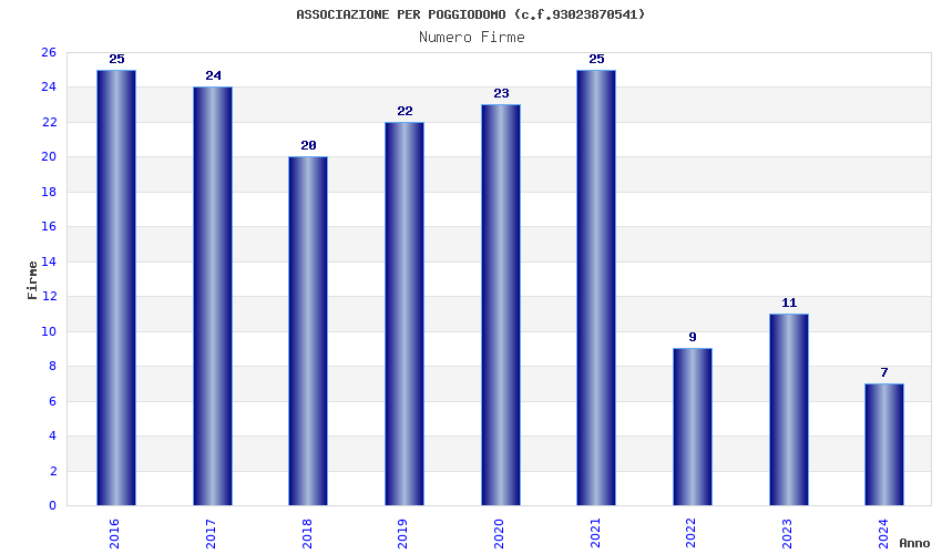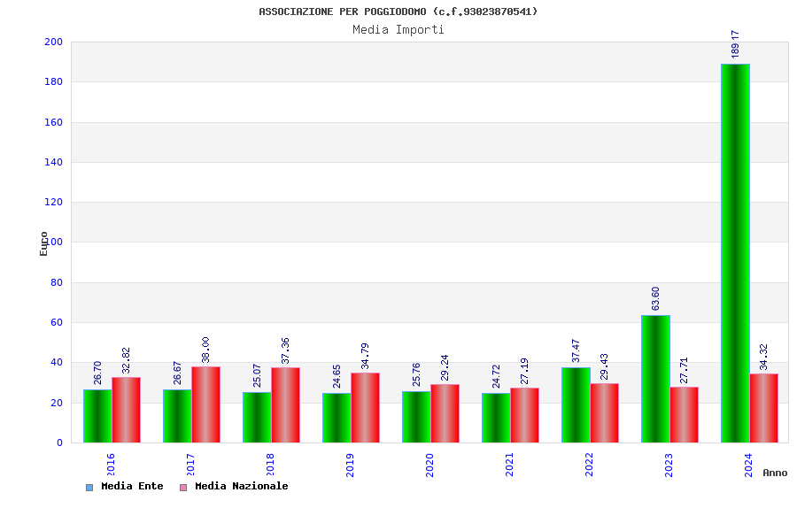 | Anno | Firme | Importi | Media | Naz. | Reg. | Prov. | Comu. |