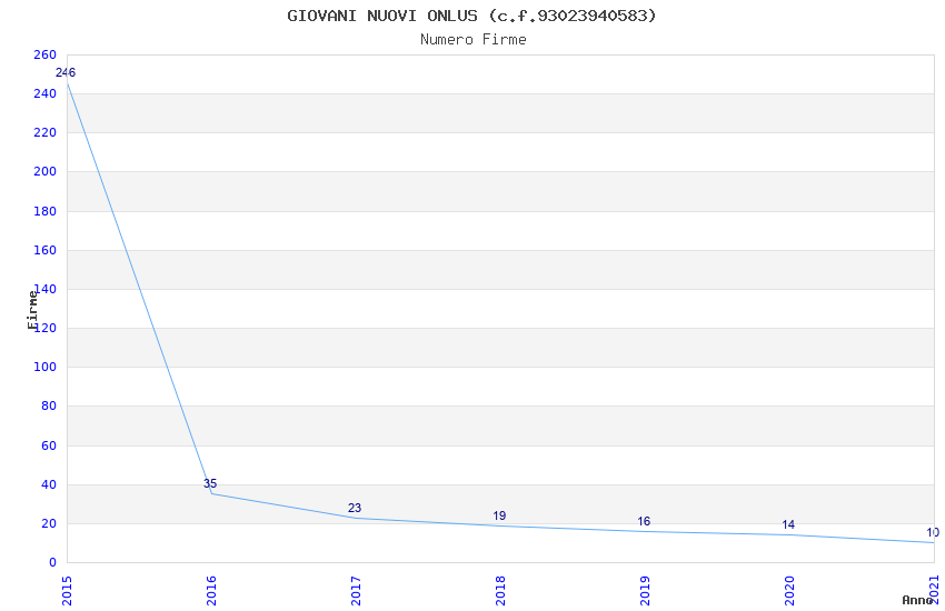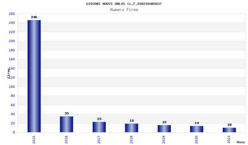 | Anno | Firme | Importi | Media | Naz. | Reg. | Prov. | Comu. |