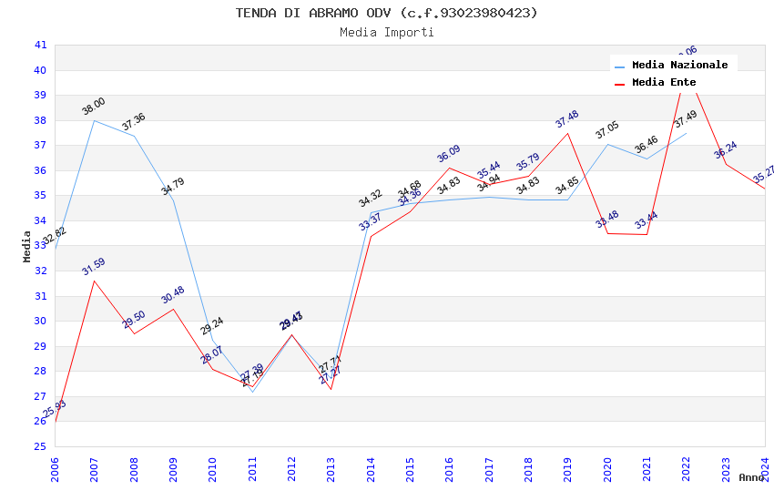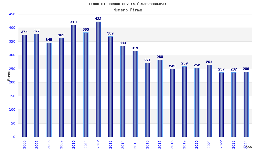 | Anno | Firme | Importi | Media | Naz. | Reg. | Prov. | Comu. |