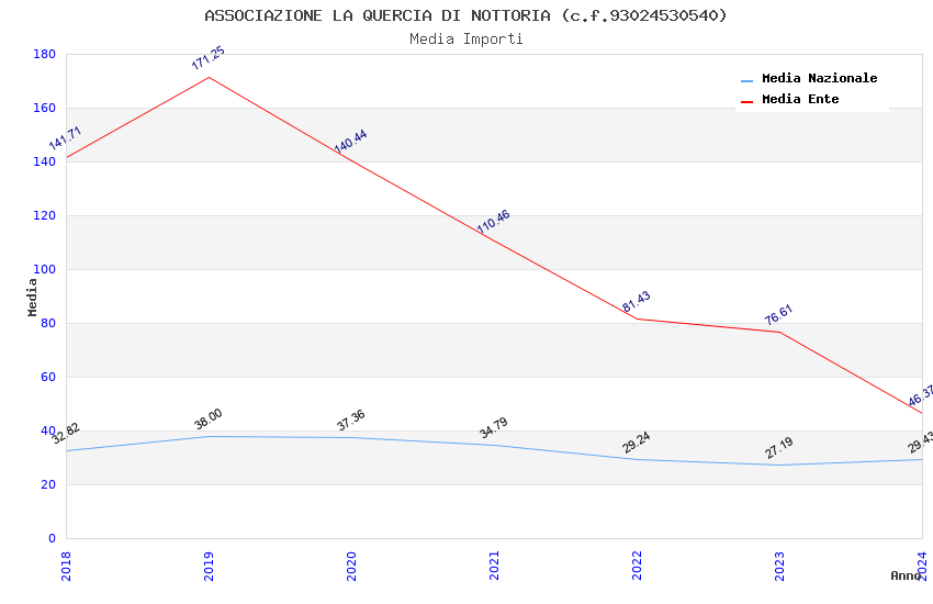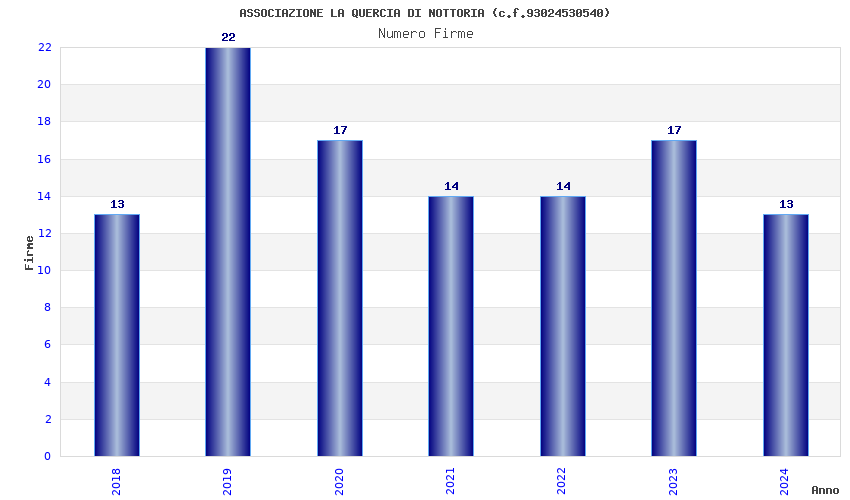 | Anno | Firme | Importi | Media | Naz. | Reg. | Prov. | Comu. |