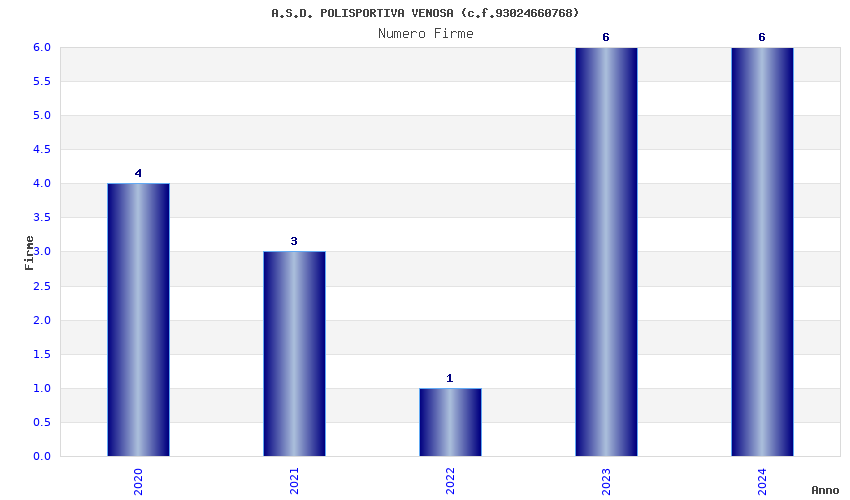 | Anno | Firme | Importi | Media | Naz. | Reg. | Prov. | Comu. |