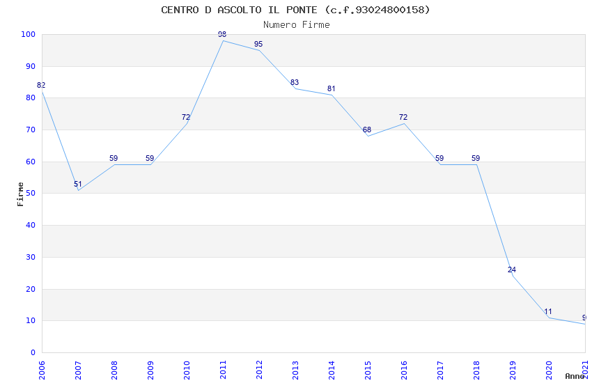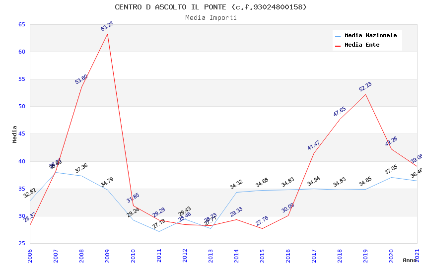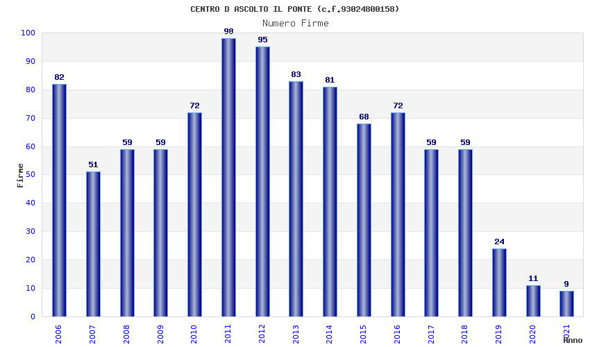 | Anno | Firme | Importi | Media | Naz. | Reg. | Prov. | Comu. |