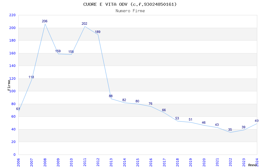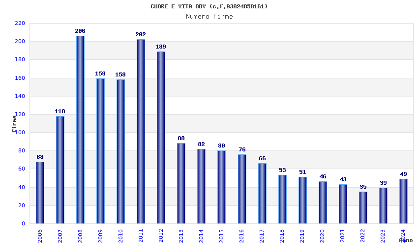 | Anno | Firme | Importi | Media | Naz. | Reg. | Prov. | Comu. |