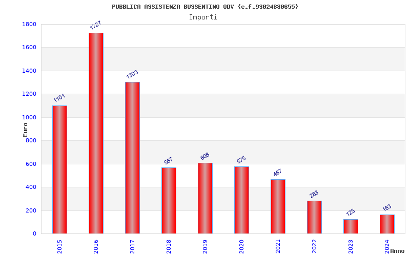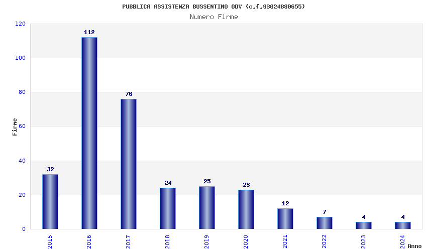 | Anno | Firme | Importi | Media | Naz. | Reg. | Prov. | Comu. |