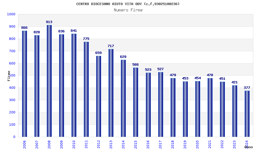 | Anno | Firme | Importi | Media | Naz. | Reg. | Prov. | Comu. |