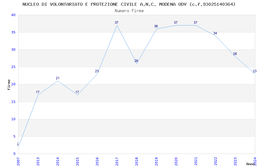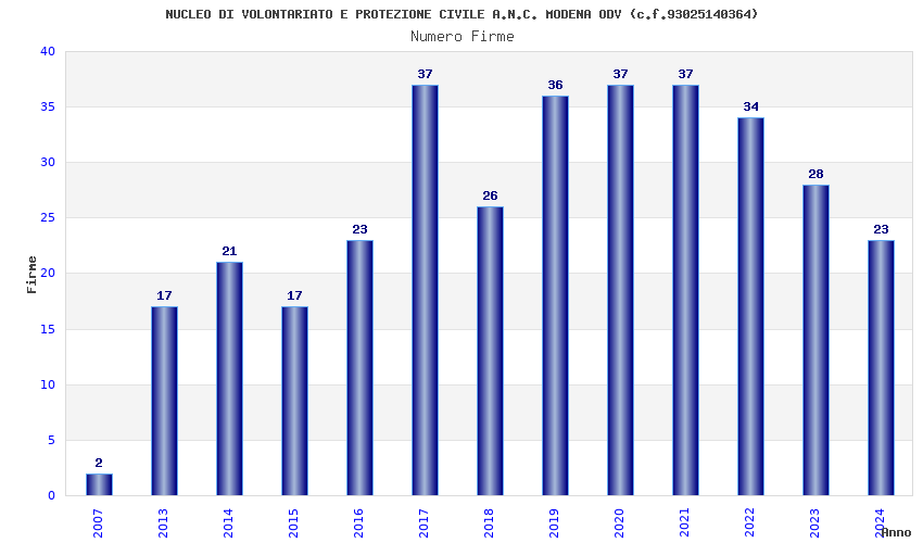 | 2017 | 37 | 1.257,19 | 33,98 | 30.784 | 2.711 | 367 | 20 |