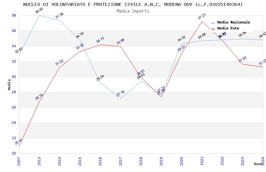 | Anno | Firme | Importi | Media | Naz. | Reg. | Prov. | Comu. |
