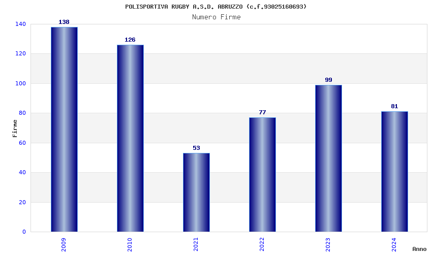 | Anno | Firme | Importi | Media | Naz. | Reg. | Prov. | Comu. |