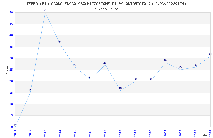 | 2013 | 50 | 1.115,50 | 22,31 | 25.686 | 5.724 | 740 | 9 |