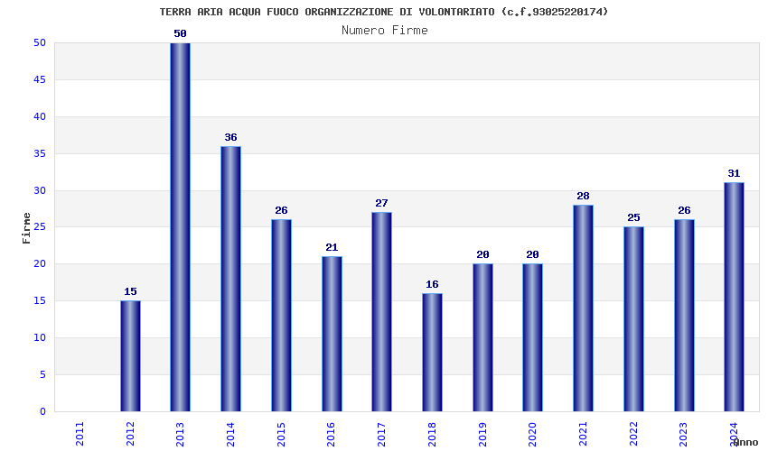 | Anno | Firme | Importi | Media | Naz. | Reg. | Prov. | Comu. |
