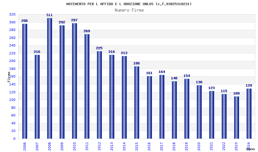 | Anno | Firme | Importi | Media | Naz. | Reg. | Prov. | Comu. |