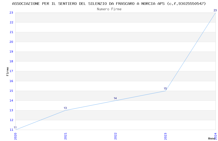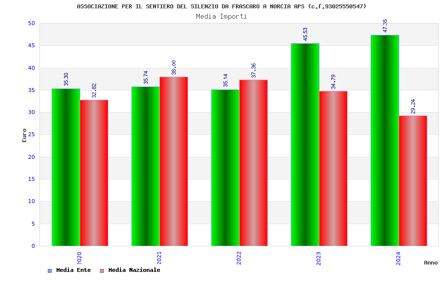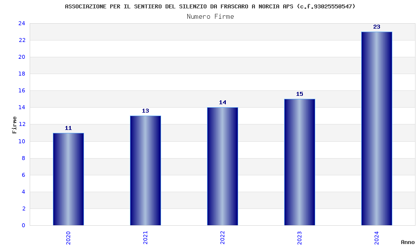 | Anno | Firme | Importi | Media | Naz. | Reg. | Prov. | Comu. |