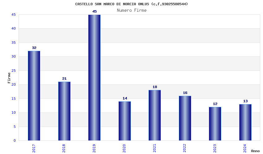 | Anno | Firme | Importi | Media | Naz. | Reg. | Prov. | Comu. |