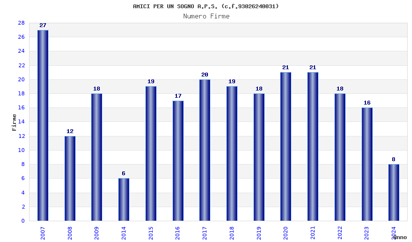 | Anno | Firme | Importi | Media | Naz. | Reg. | Prov. | Comu. |