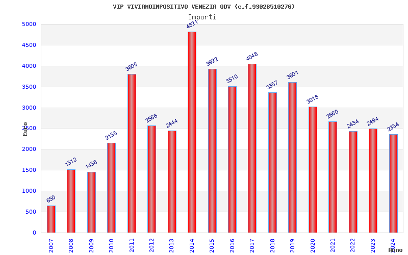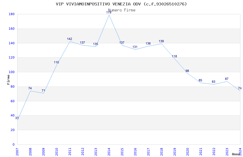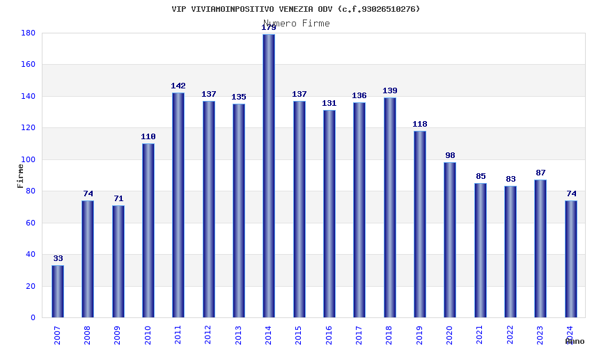 | Anno | Firme | Importi | Media | Naz. | Reg. | Prov. | Comu. |