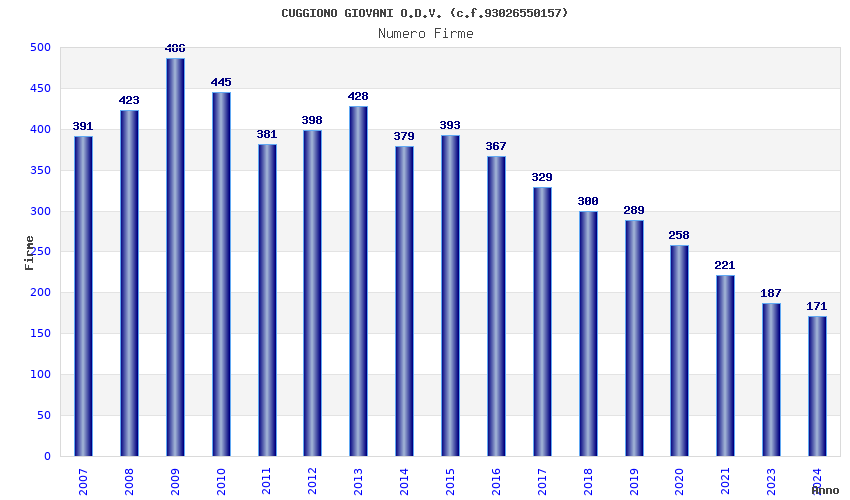 | Anno | Firme | Importi | Media | Naz. | Reg. | Prov. | Comu. |