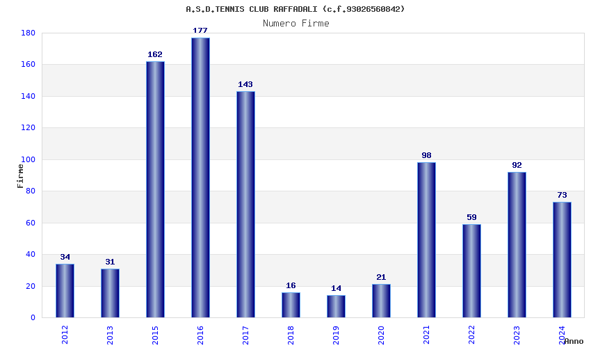 Anno Firme Importi Media Naz. Reg. Prov. Comu.